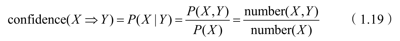 置信度体现为,在一个数据出现后,另一个数据出现的概率,或者说数据的条件概率为