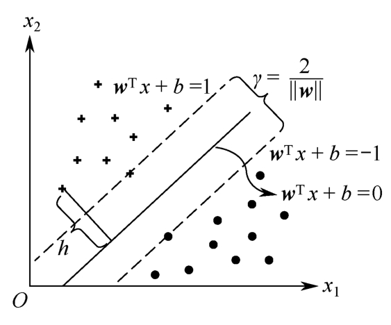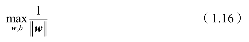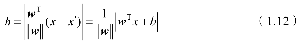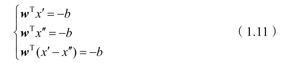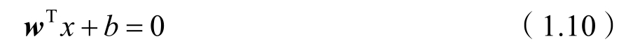 式中, w =( w 1 , w 2 ,…, w d )表示该超平面的法向量; b 表示位移项。
