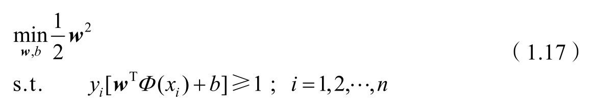 通过求解式(1.17),即可得到符合要求的超平面,并对数据进行二分类。