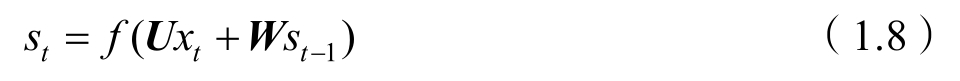 式中, U 为输入向量 X 的权重矩阵; W 为上一时刻的输出作为这一时刻的输入的权重矩阵; ƒ 为激活函数。