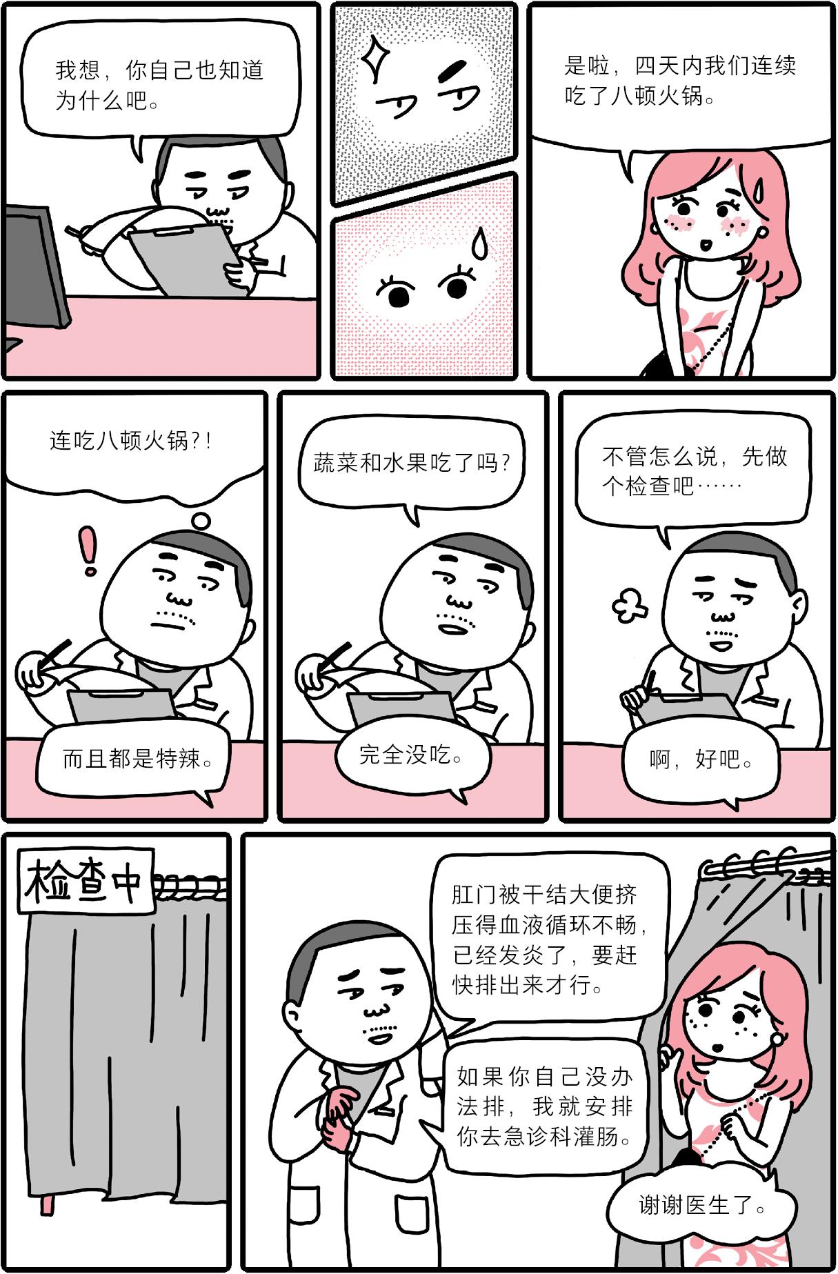 过分刺激的饮食有可能破坏我们肠道的动态平衡,使大便出现干结情况。肠子本来在正常状态下不会很粗,但是它是一个非常有弹性的器官,可以容纳很多大便。想要排出干结的大便非常困难。大量堆积的大便会压迫屁屁的血管,导致痔疮的急性发作。这种急性发作的炎性痔疮非常疼痛。大便排出之后,这种炎症普遍在两三天内能够得到缓解。