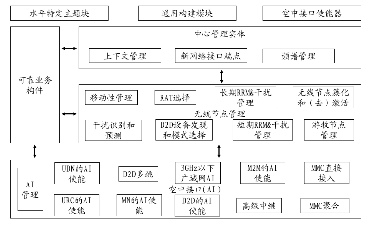 中心管理实体、无线节点管理和空中接口还分别包括多个子功能构件,如图1-12所示。