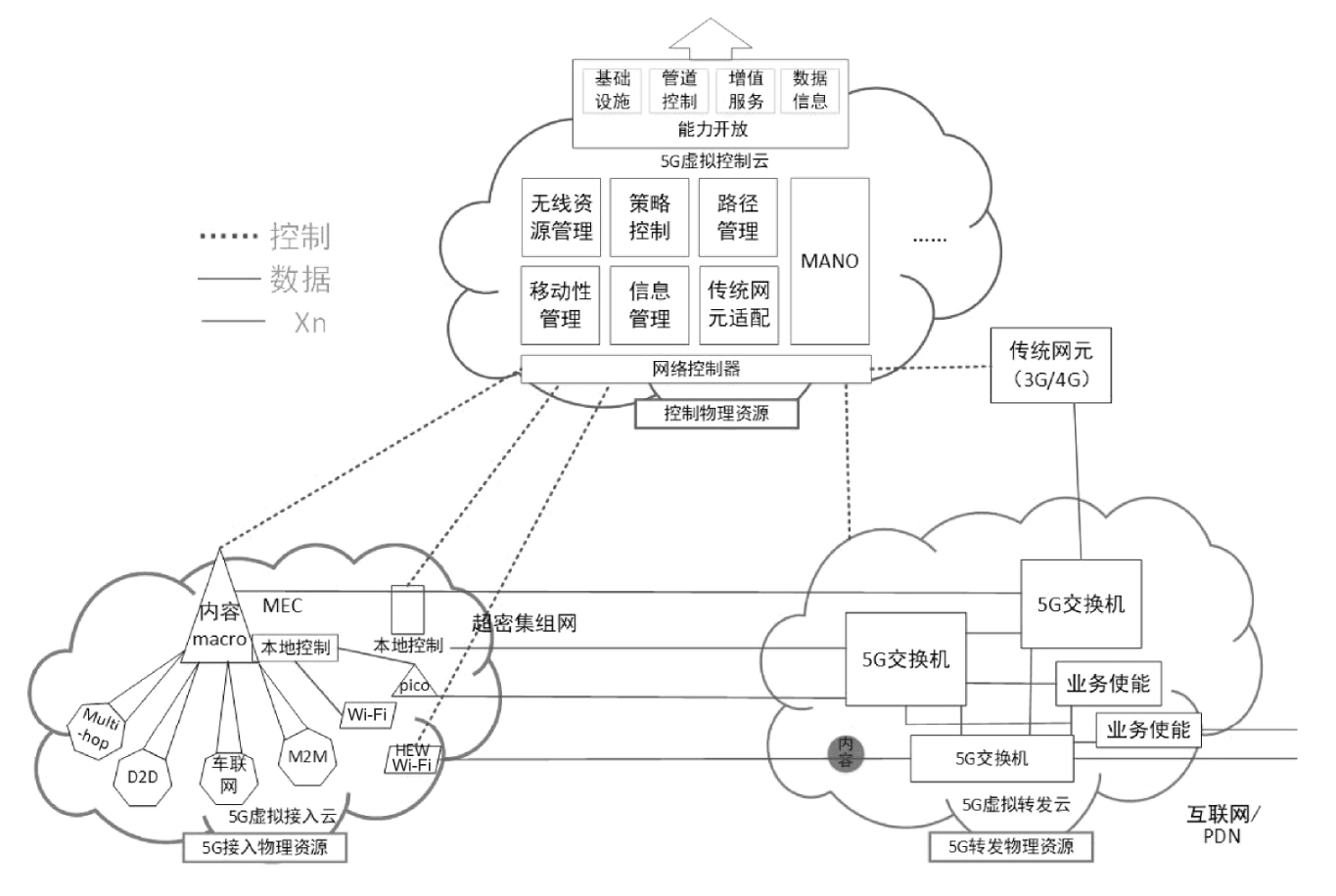 控制云通过管理模块完成所有的控制功能。这些管理模块涵盖无线资源管理模块、策略控制模块、路径管理模块、移动性管理模块、信息管理模块、传统网元适配模块等。上述模块负责移动通信的过程和业务控制、策略控制、会话管理、移动性管理、策略管理、信息管理等。此外,控制云还支持能力开放。