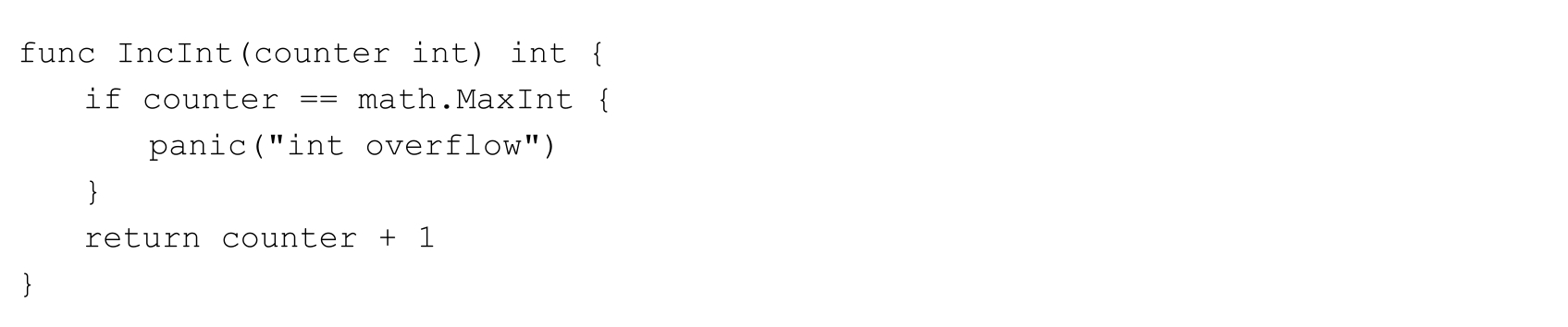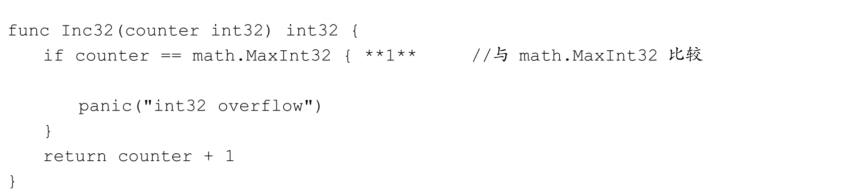 此函数通过检查输入是否等于 math.MaxInt32来判断。在这个例子中,我们就可以判断增量计算是否会导致溢出。