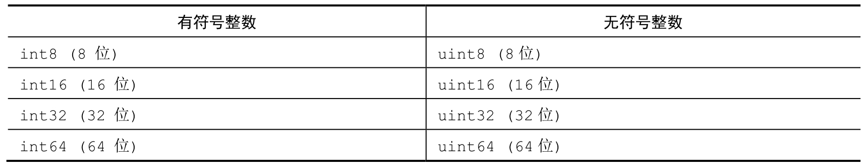 Go 总共提供了 10种整数类型。有4种有符号整数类型和4种无符号整数类型,具体如下表所示。