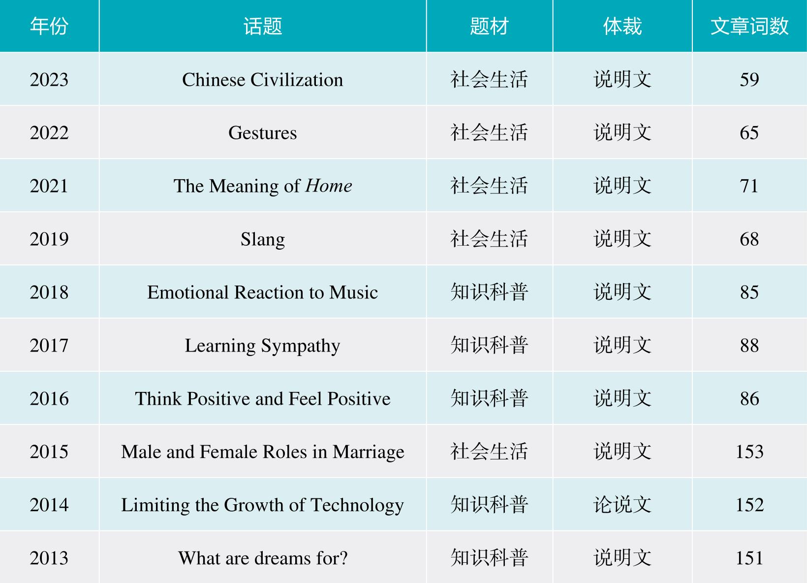 ☛ 题型改革后(2016~2023)的文章为1段,词数在50~90之间。