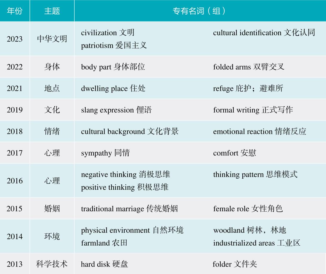 专四的听写所涉及的都是日常生活中大家所熟悉的事物,常会涉及一些专有名词(组),而考生可能对中文的表达有所了解,但是对英文的表达却很陌生,因而造成专有名词(组)的拼写错误,下表列举了近10年专四真题听写材料中的专有名词(组):