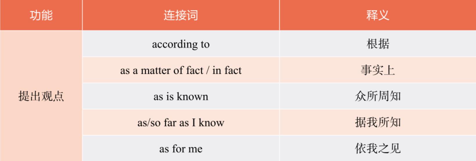 一篇高分作文必然是行文连贯、各种衔接手段运用自如的。这里所说的衔接手段通常就是指连接词的使用,如:secondly、for example、in conclusion等。连接词有助于整合观点,阐明段落、句子、成分之间的逻辑关系。