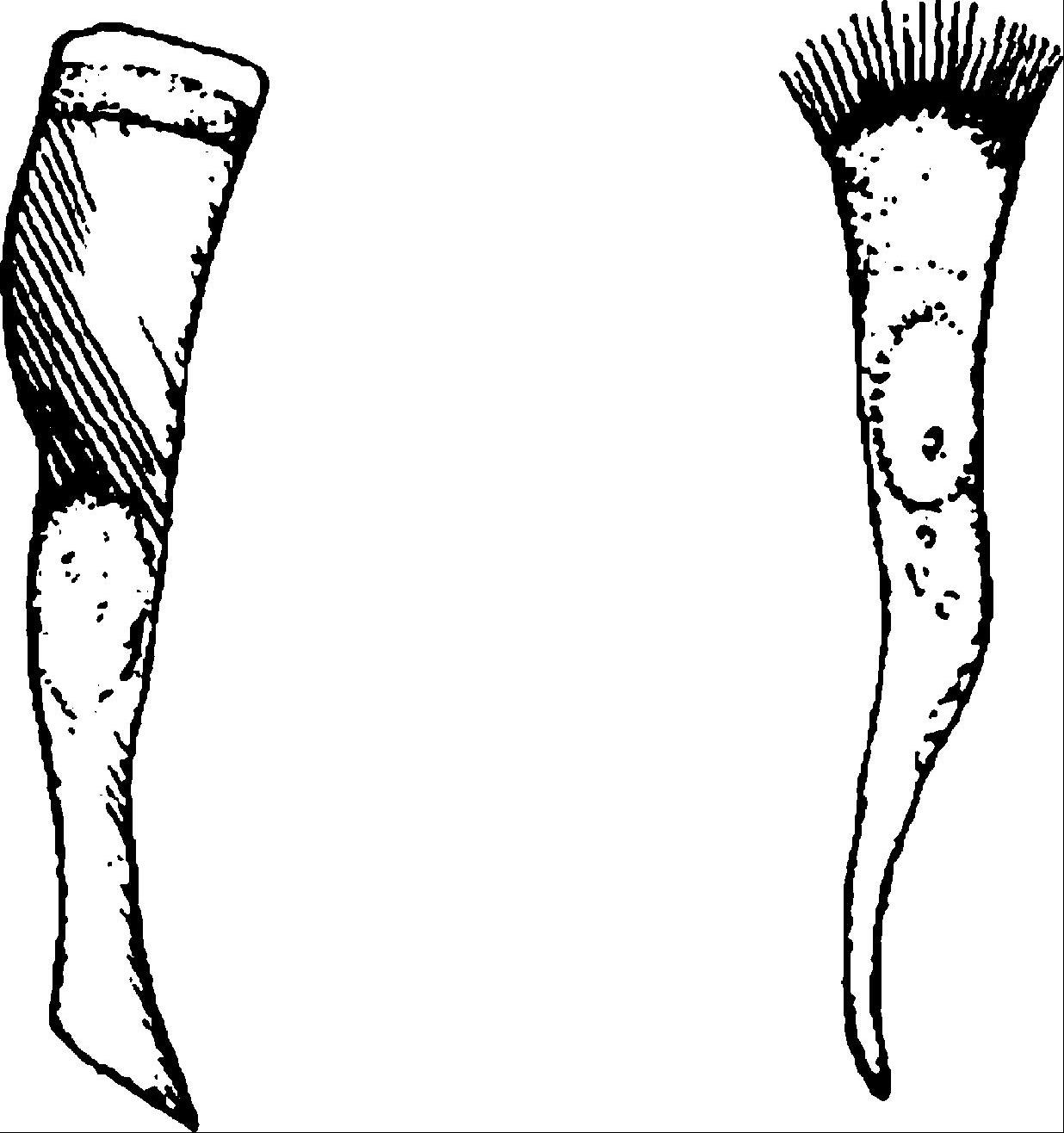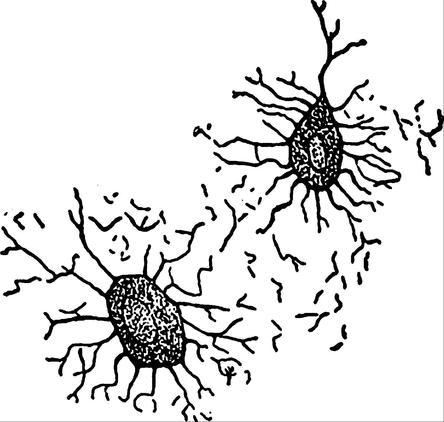 (2)支持和联结人体各部分的组织细胞:我们不能只用一种类型的细胞和这类细胞形成的组织来构造人体,还需要坚固的组织来联结人体的各个部分。我们需要高弹性的肌腱(tendons)来【59】维系肌肉;需要牢固的软骨来构成鼻子,使得鼻孔张开;当婴儿还处在胚胎期(子宫内)时,需要强健的组织结构(framework),能够存放矿物盐类(mineral salts)以形成骨骼(当这些沉淀物形成骨骼后,原来的结缔组织[connective tissue]结构就消失了);需要坚韧的纤维“外套”——骨膜(periosteal)包裹骨头,在骨骼连接处作为缓冲物(buffers);需要非常坚韧牢固的纤维——白色的纤维软骨(fibro-cartilage)来连接可以活动的骨头。所有这些支持联结的结构是由结缔组织细胞构成的。这些组织被称作结缔组织(软骨和骨骼、肌腱、纤维、网眼状结构)。图3所示是两个构成骨骼结构的结缔组织细胞。