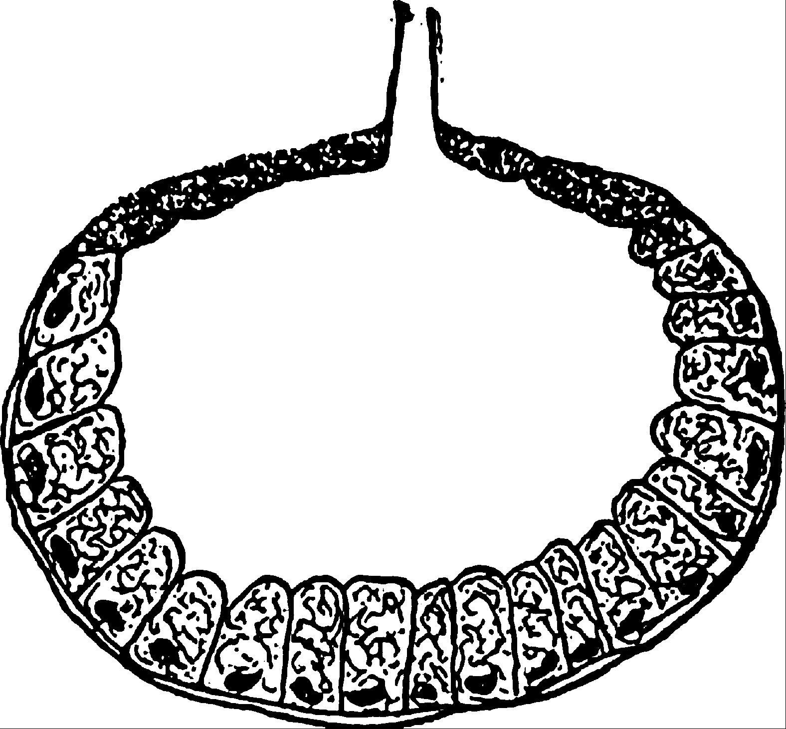 (b)无纹肌或平滑肌细胞(unstriped or smooth muscle cells)和平滑肌组织:如图5所示,平滑肌细胞是细长的,就像头发的形状。这些细胞组织构成肌肉层(muscular coats)。无纹肌组织构成胃、肠、膀胱、性器官、眼球的虹膜(控制瞳孔的开合)、通向腺体的导管管壁,以及动脉和静脉的主要肌肉层。