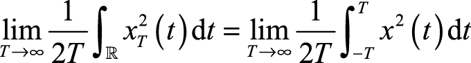 至此,我们已经介绍了从时间维度和集合维度考察信号的特性,并且介绍了这两种维度在遍历性随机过程中的等价性。为了更加深刻地描述和研究随机过程的性质,以下从频域的角度对信号展开分析。傅里叶变换是对随机过程的时间维度展开的,即对随机过程的样本进行傅里叶变换。由傅里叶变换的定义可知,信号需为能量型信号。但是,大部分随机过程的样本在整个时间轴上取值且值不为零。所以,随机过程的样本不是能量型信号,不能直接做傅里叶变换。可以通过对样本截断的方法,要求其在有限时间里的能量有限。定义信号的截断为