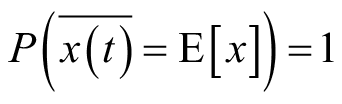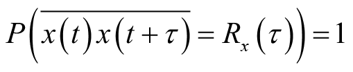 那么称该随机过程的均值具有遍历性。类似地,对于二阶平稳随机过程,若其相关函数与时间相关函数以概率1相等,即