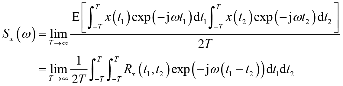 功率谱密度从频域的角度给出了刻画随机过程的二阶统计特征,与时域中刻画随机过程特征的相关函数互为补充。一个自然的问题是:这两个统计量之间是否存在一定的联系?以下回答这个问题。从功率谱密度函数的定义式出发,可得