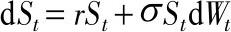 这里, W t 是维纳过程,或者叫布朗运动; r 和 σ 分别表示 S t 的数学期望回报率和波动率。虽然 S t 对未来的时间 t 是随机的,但这两个参数决定了风险资产未来的数学期望值和随机波动的大小。