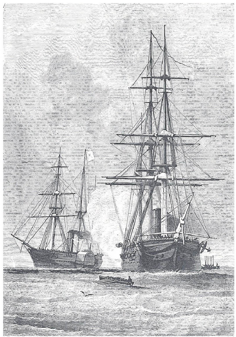 然而,几乎与此同时,海军立下的另一份功劳吸引了公众更多关注,并一度激起了强烈的兴奋,制造了重大的悬念。南方邦联政府任命前参议员詹姆斯·默瑞·梅森和约翰·斯莱德尔为前往欧洲各国寻求援助的特使。他们设法避开了封锁,到达了哈瓦那。指挥“圣阿辛托”号军舰的查尔斯·威尔克斯上尉,得知他们将乘坐英国邮轮“特伦特”号前往英格兰,于1861年11月8日在古巴海岸附近拦截了“特伦特”号邮轮。像往常那样,他武力俘虏了这两名叛军特使,并将他们带回了美国,但放走了“特伦特”号邮轮。这起所谓的侮辱事件在英国和在美国一样令人激动,英国政府立即开始大张旗鼓地为战争做准备,因为它草率地认为这是违反《国际法》的,也是对英国国旗的侮辱。英国驻华盛顿大使理查德·比克顿·佩梅尔·里昂勋爵接到指示,要求释放囚犯,并做出适当的道歉。如果这一要求在一周内得不到满足,他将关闭使馆并返回英国。