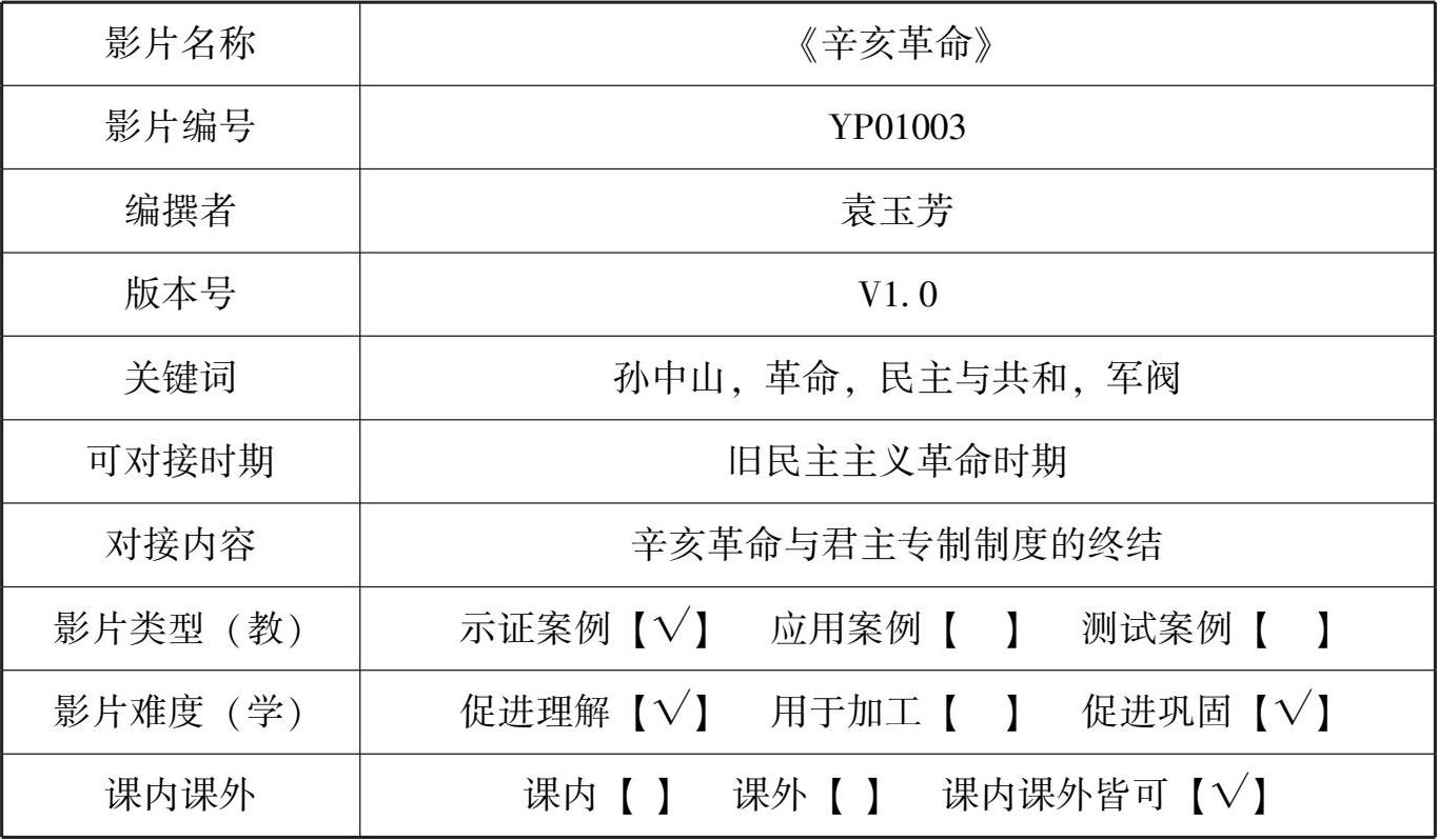 (1)通过影片了解辛亥革命爆发的原因及失败教训;