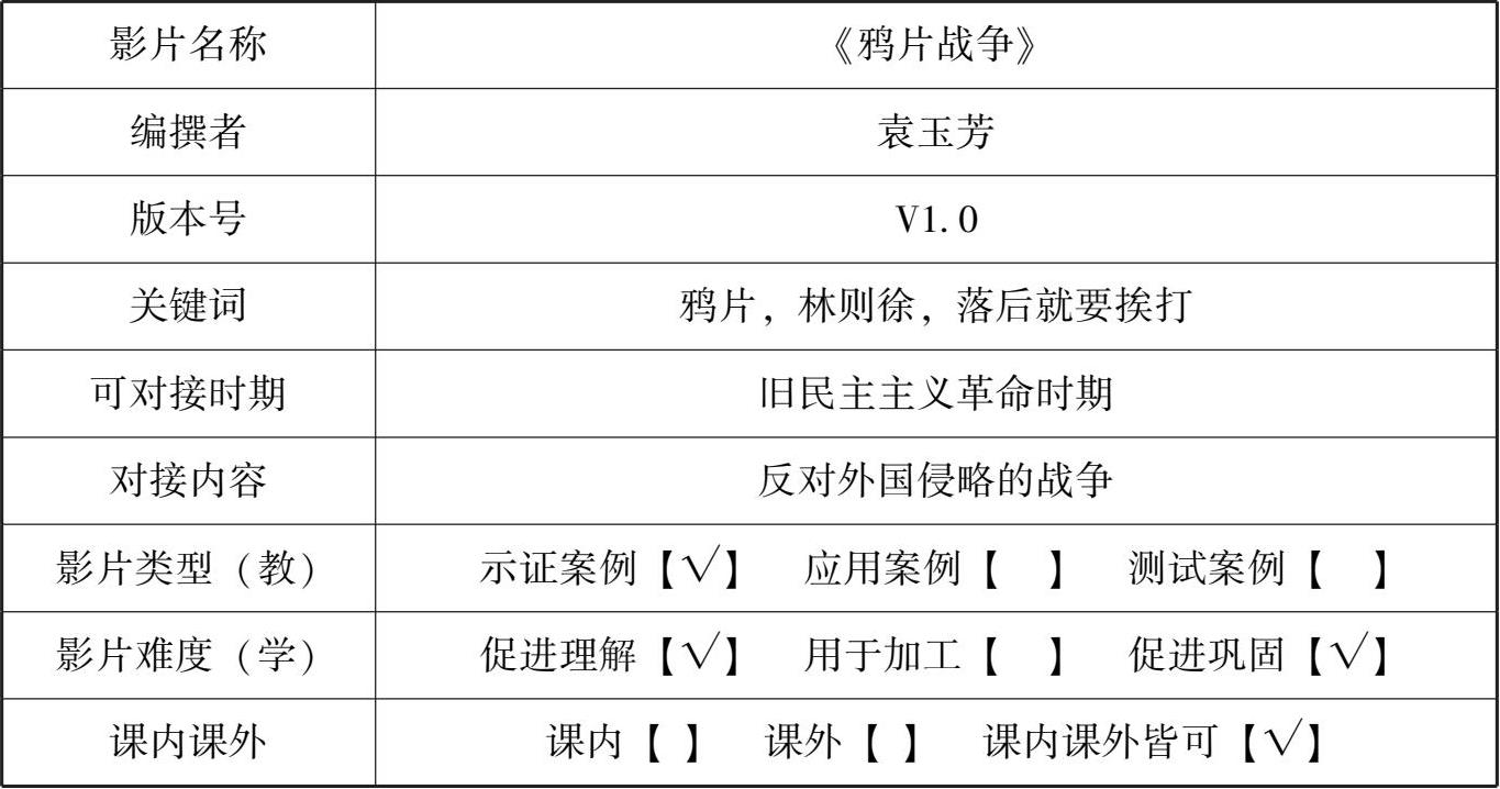 1.对接教学内容:第一章“红色经典影片与新民主主义革命时期”第一节“红色经典影片与近代中华民族磨难与抗争”第一目“红色经典影片反对外国侵略的战争”。