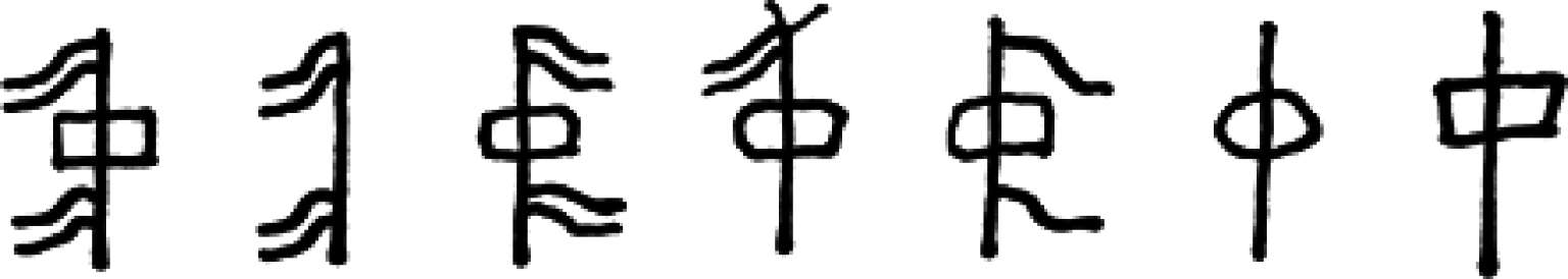 图 1“中”字在甲骨文和商周金文中的一些不同字形