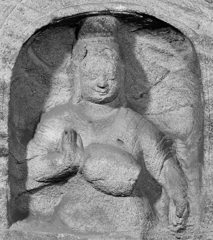 图8 第 16 窟南壁西侧坐佛圆拱龛右上隅乐伎演奏钹