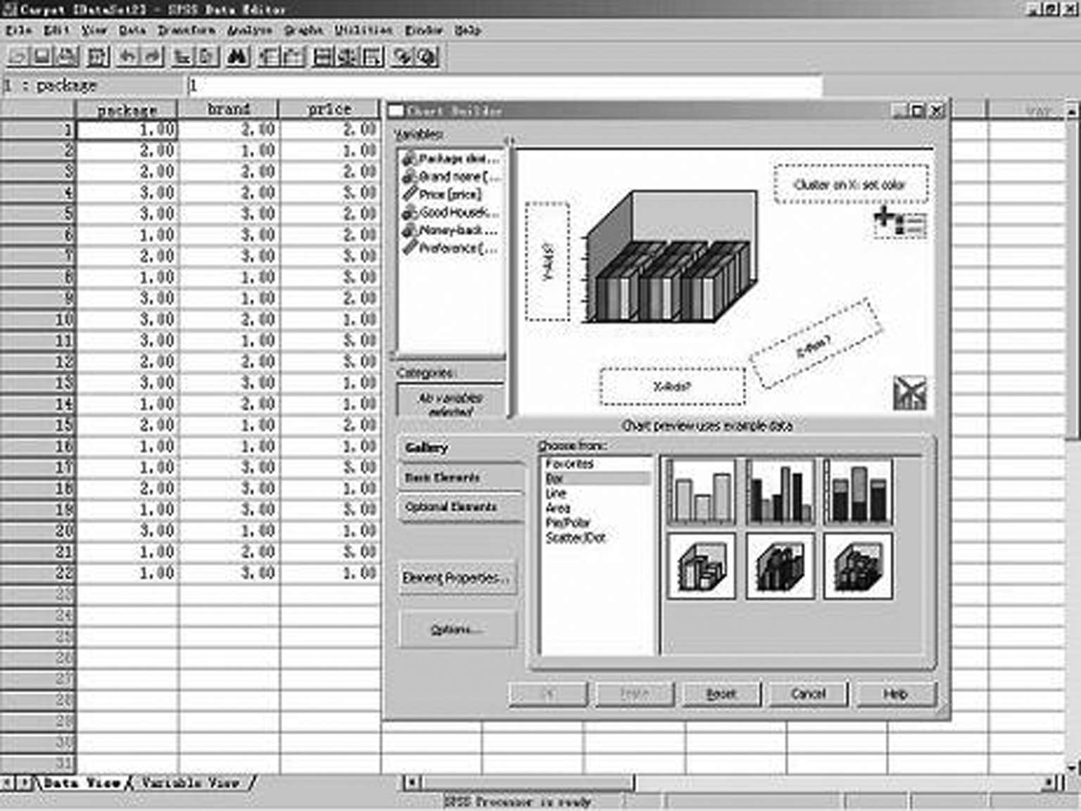 本书中广告统计研究工具统一采用SPSS13.0(英文版),简写为SPSS(Statistical Package for Social Sciences,社会科学统计软件包),SPSS一直是国际上最流行且具有权威性的统计分析软件。1992 年,SPSS推出第一个Windows版本——SPSS4.0。此后,SPSS不断更新、升级至SPSS 13.0 或更高版本。 SPSS和SAS(Statistical Analysis System,统计分析系统)、BMDP(Biomedical Programs,生物医学程序)并称为国际上最有影响的三大统计软件。随着产品服务领域的扩大和服务的加深,SPSS于 2000 年正式更名为Statistical Product and Service Solutions,意为“统计产品与服务解决方案”,这标志着SPSS软件的发展方向和应用领域有了重大拓展。 SPSS软件最显著的特点是菜单和对话框操作方式,无需学习专门的程序语言,绝大多数操作过程仅靠鼠标击键即可完成,易于掌握和操作,因而成为非统计专业人员最经常使用的统计软件。