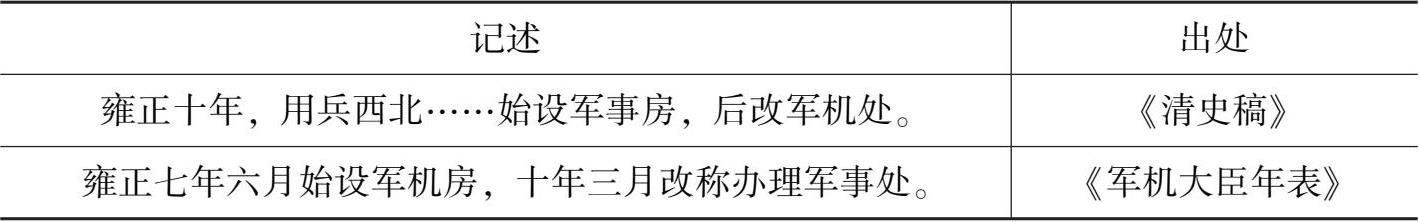 13. 下表为不同史籍关于军机处设置一事的历史记述。根据“孤证不立”(只有一个例子不能证明某件事情成立)的史学研究方法,能够被认定的共同历史事实是军机处()