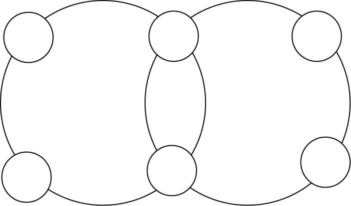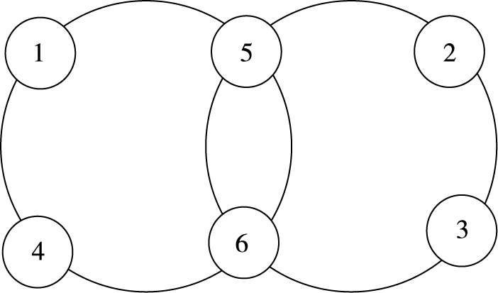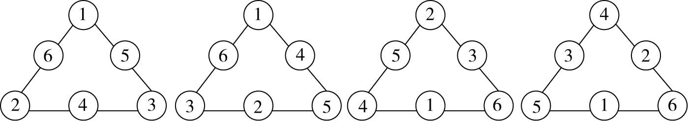 把 1、2、3、4、5、6 分别填入图中各小圆内,使每个大圆上四数之和都是 16。(图 72)