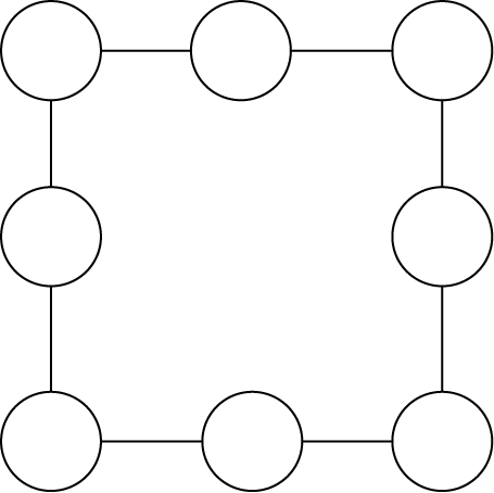 把 1 ~8 八个自然数填入正方形上的各○内,使每边上三数之和相等。(图80)