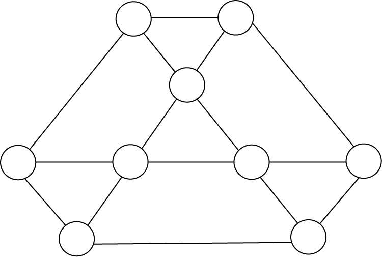 爱因斯坦成名后,仍继续为《法兰克福报》写稿。下面是他提出的一道题:图中几个圆的圆心是4 个小等腰三角形与3 个大等腰三角形的顶点,把数字1 ~9 填入圆内,使每个三角形顶点的数字和都相等。(图 68)