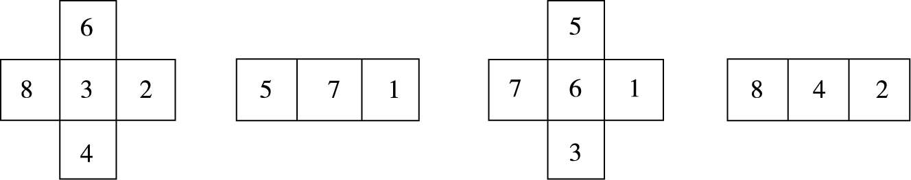 6.把 2 ~9 八个自然数填入各口内,使横行五数之和与竖行四数之和相等。(图 87)