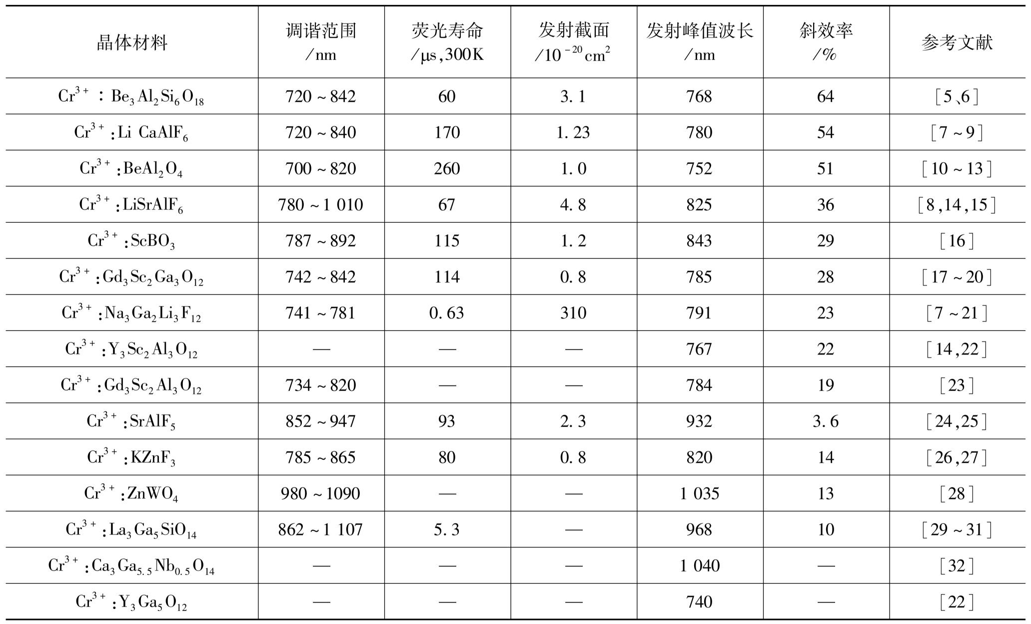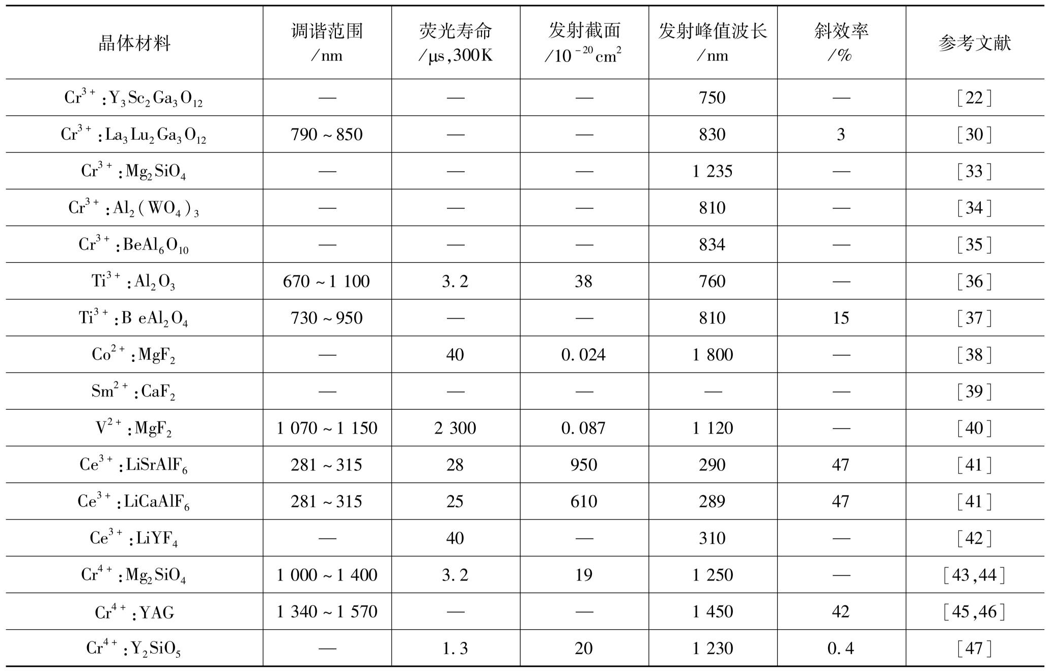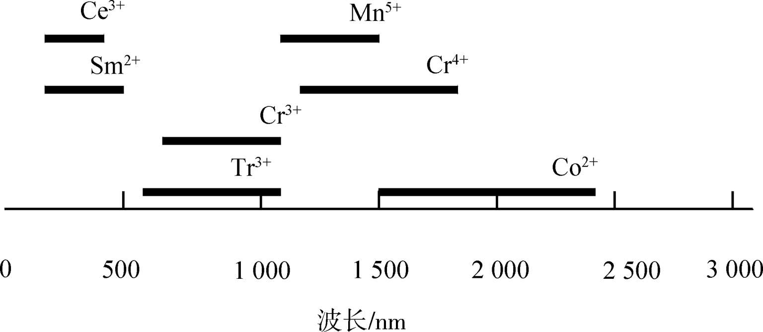 表1.1 掺过渡金属离子的可调谐激光晶体材料