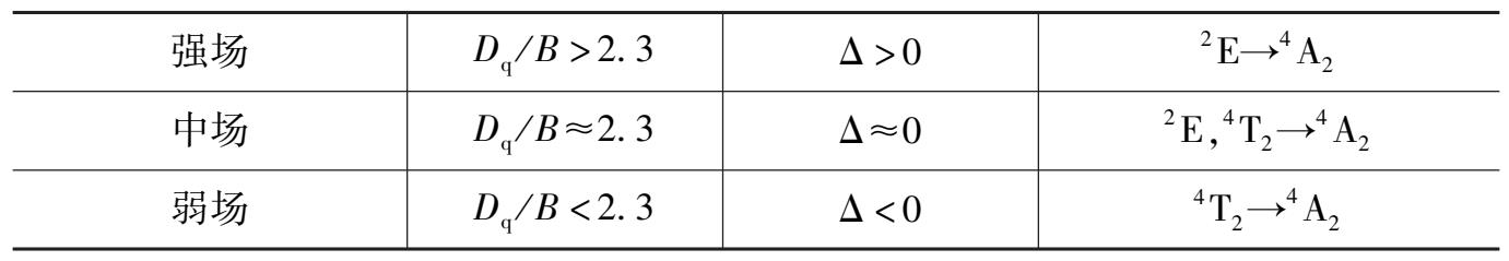 等根据不同的晶体场强度所表现的发射特点不同来对基质进行分类,引入了参数Δ