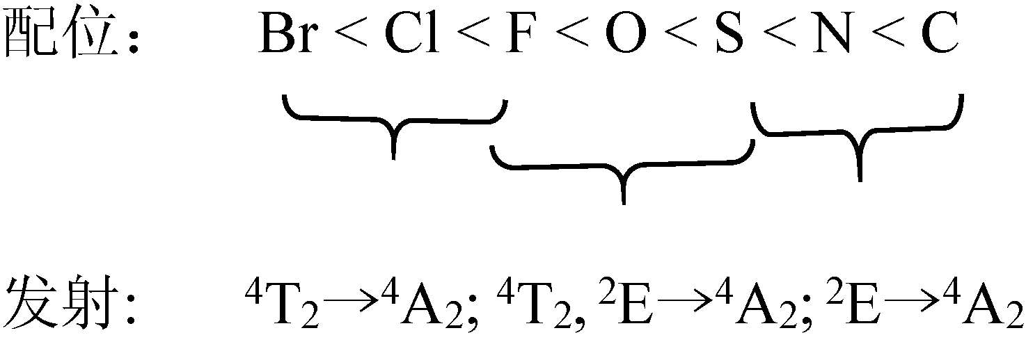 其中所列各原子为距离发光中心离子最邻近的原子,该序列将吸收光谱与最邻近的原子特性联系起来。从左到右,吸收谱中心向短波方向移动。因此低场介质在某些氧化物和卤化物中比在硫化物和氰化物中更可能获得,其中典型代表是