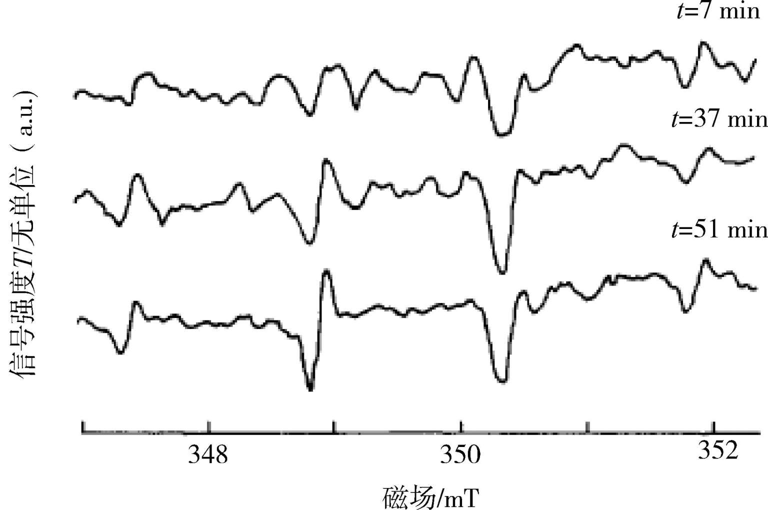 加合物的ESR的特征信号峰,即一个连续的六重特征峰