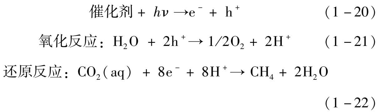 近年来,种种原因导致排放到大气中的CO 2 含量不断增加,所产生的“温室效应”可造成海平面上升,极地冰川融化等重大破坏生态平衡问题,引起越来越多学者的关注。但随着家庭汽车的普及和工业经济的发展,对石化燃料需求的不断增长和化石燃料有限储量之间的矛盾升级,利用CO 2 作为碳源来合成有机物燃料成为研究的热点。由于光催化过程中产生的高活性电子,让人们很容易联想到光催化技术。只要空穴电位大于参与反应的被氧化物的氧化电位,电子的还原电位低于要参与光催化反应的被还原物的还原电位,光催化还原CO 2 的过程就会发生。这里以光催化还原CO 2 为CH 4 为例: