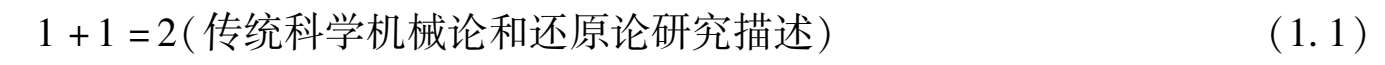 贝塔朗菲最先把涌现概念引入系统科学,提出了“涌现的特征”,借用亚里士多德的命题“整体大于部分之和”来直观地表述这种涌现性,并获得广泛认可。它简化的说法可以是:1+1>2(传统的数学思维或者机械论还原论思维1+1=2)。苗东升认为,这种直观形象的理论是不严谨的,整体涌现性固然有定量描述,但它首先是指定性特征,整体具有组分之和没有的新质,即新的定性特征。如何探讨这种定量描述背后的定性问题?又如何将它们逻辑连贯呢?
