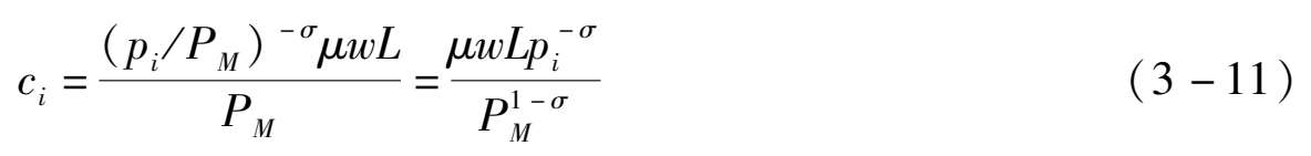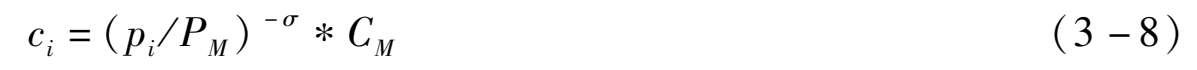 ,反映了制造业产品的价格指数。将其代入(3-6)式,可以得到制造业产品的需求函数为: