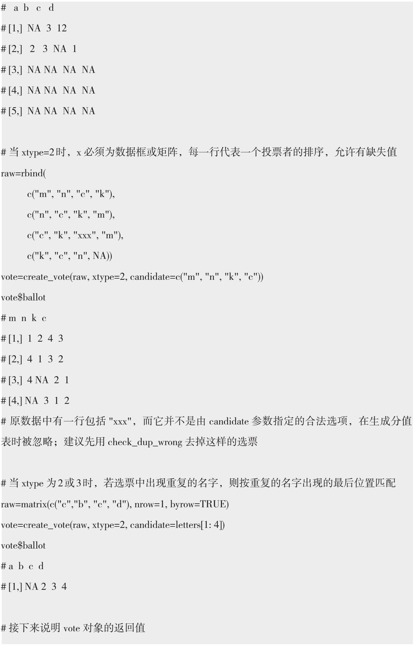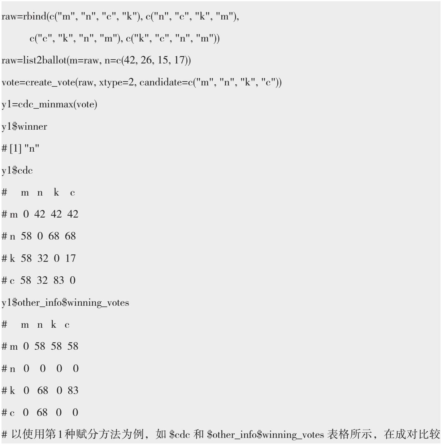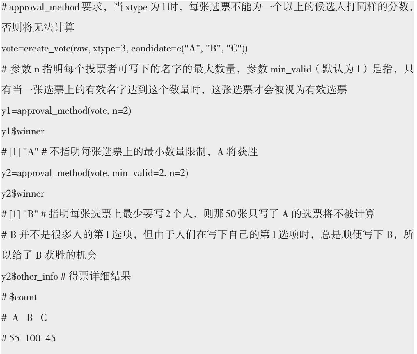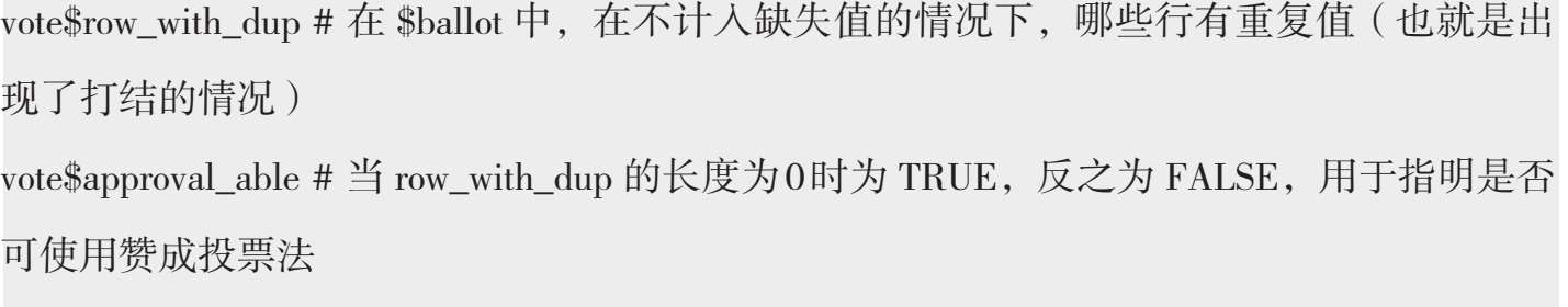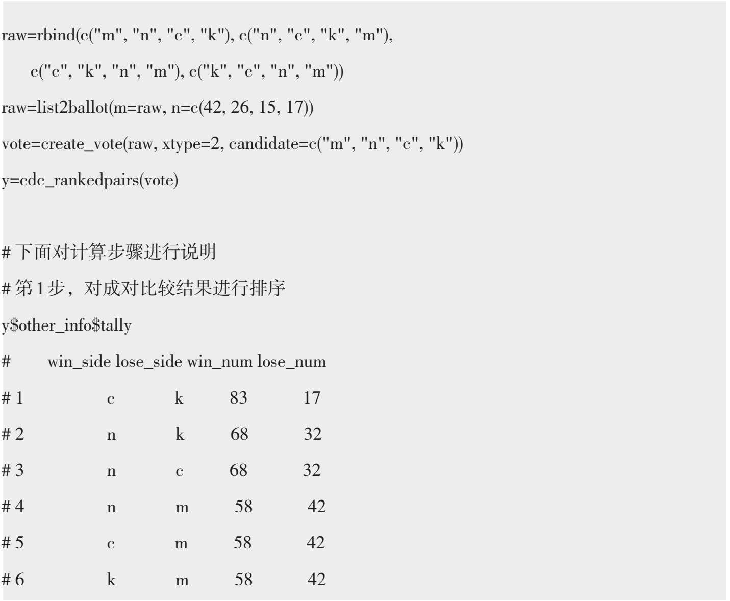 使用多数制时,可直接用table函数计算,也可将偏好数据转化成vote对象再计算,以便对比不同算法的结果。