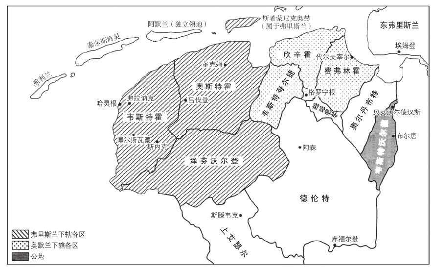 地图8 弗里斯兰、奥默兰各区,以及格罗宁根、韦斯特沃尔德和德
