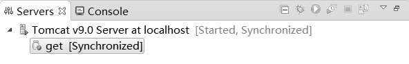 打开Servers视图,如图2-14所示。右击Tomcat v9.0 Server at localhost→单击Start,启动Tomcat后,在Eclipse的Console控制台视图中就可以看到Tomcat的后台信息。