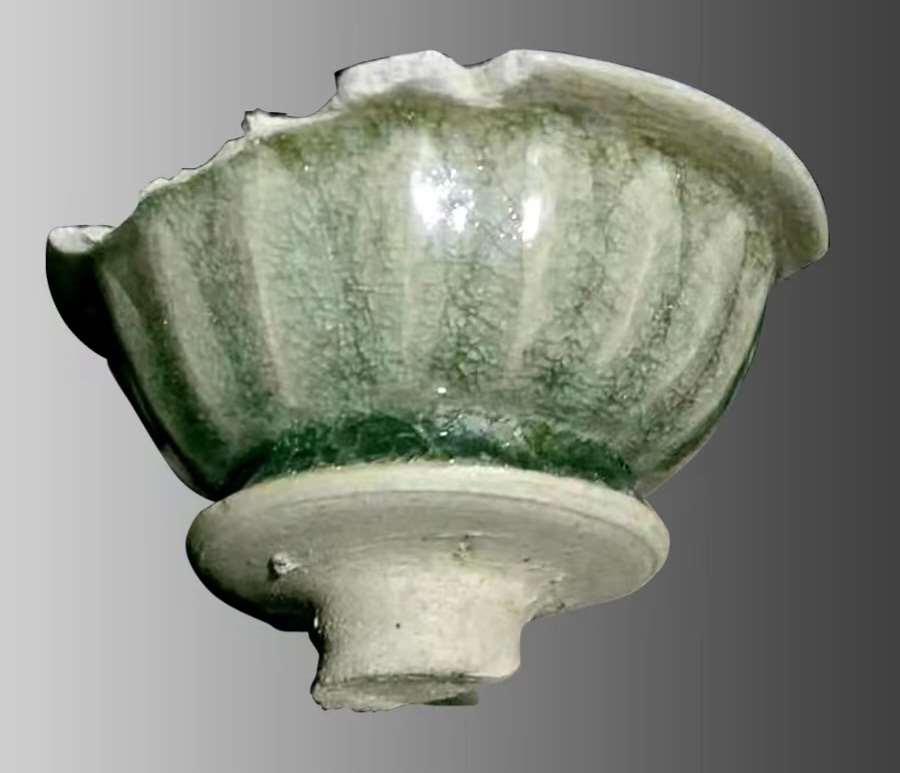 品名:琉璃釉莲瓣碗。年代:北宋末至南宋早期。尺寸:直径12 cm,高9 cm。产地:潘里垄窑址群。残件。