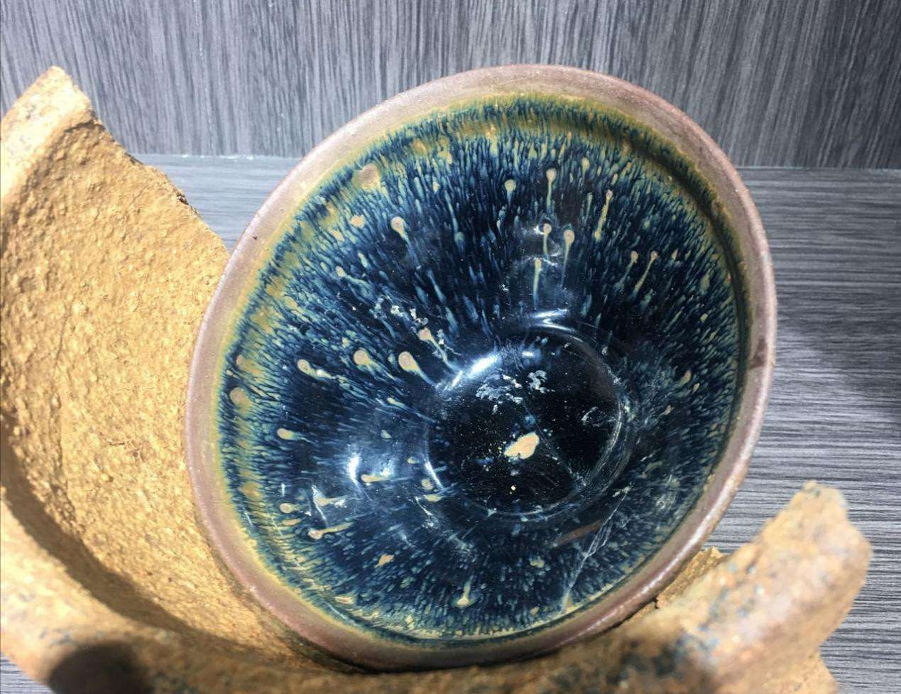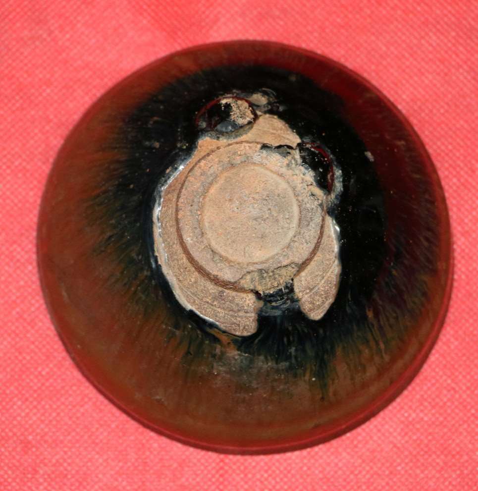 品名:斑鸠黑盏(匣砵黏连)。年代:北宋。尺寸:口径12 cm,高10 cm。产地:竹口潘里垄窑。与匣砵黏连,窑址出土。
