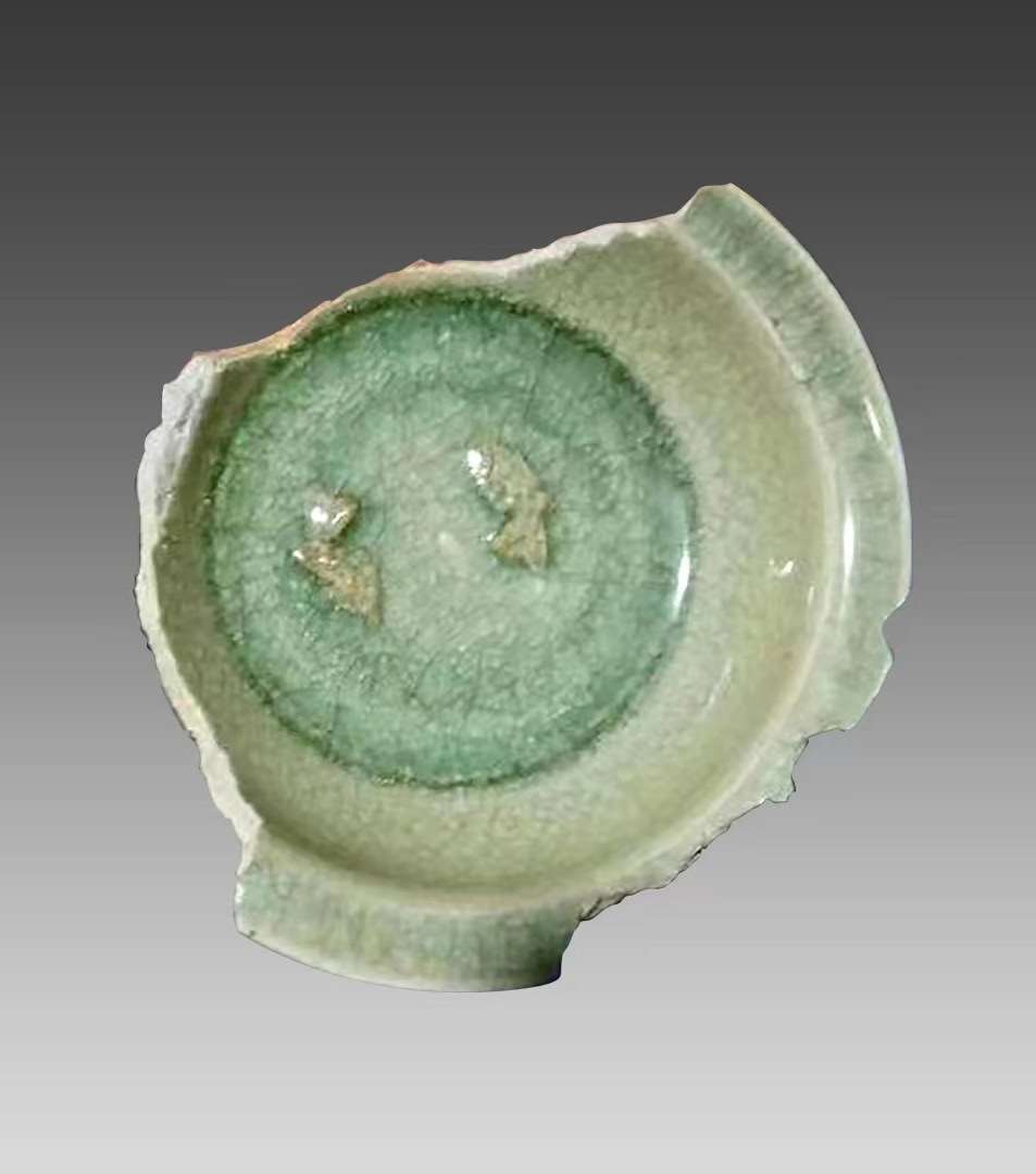 品名:琉璃釉莲瓣双鱼洗。年代:北宋末至南宋早期。尺寸:直径12 cm,高6 cm。产地:潘里垄窑址群。残件。