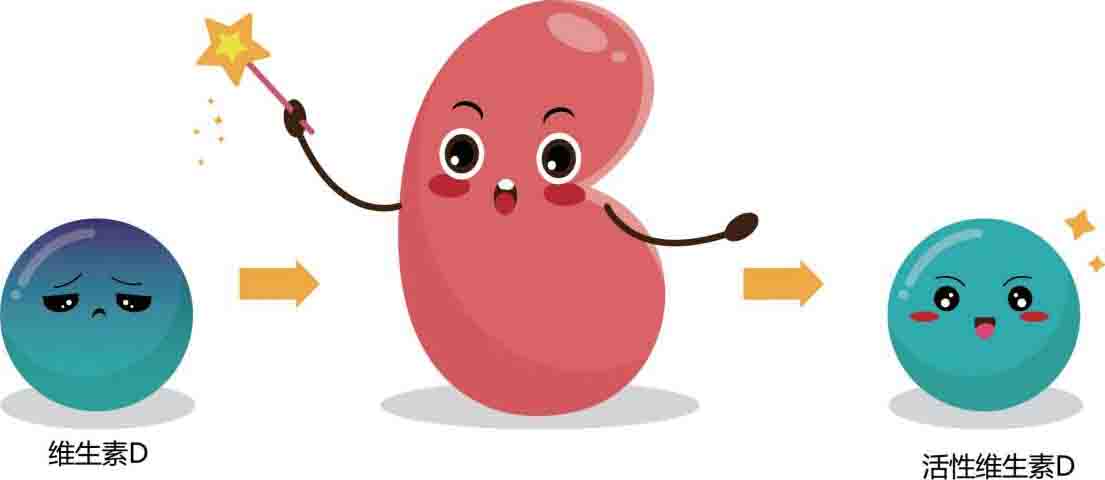我们都知道,皮肤经紫外线照射后会产生维生素D(VitaminD,VitD),而这个VitD是没有活性的,需要经过肾脏加工后才能变成有活性的VitD。肾功能受损以后,VitD不能活化,活性VitD缺乏,钙吸收发生障碍,因此,人体就会出现缺钙、高磷、骨质疏松等一系列问题。临床上经常见到一些老年人,没有受多大的外力就骨折了,这可能是肾衰发生在先,缺钙、骨质疏松在后而导致的“病理性骨折”。所以,如果老年人莫名其妙地骨折,一定记得去检查一下肾功能!