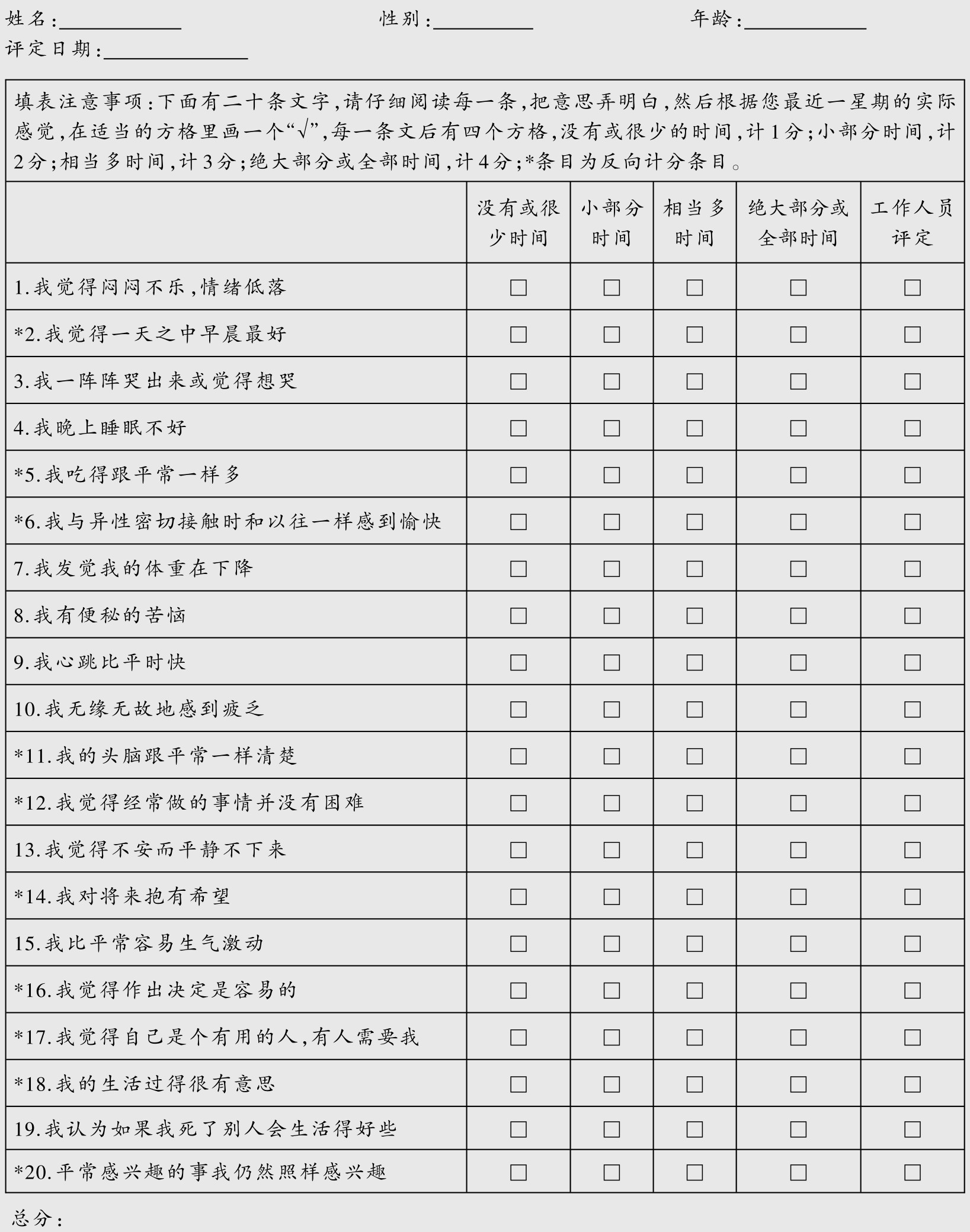 (2)评估患者有无忧郁、仇恨、悲观、绝望等心情。