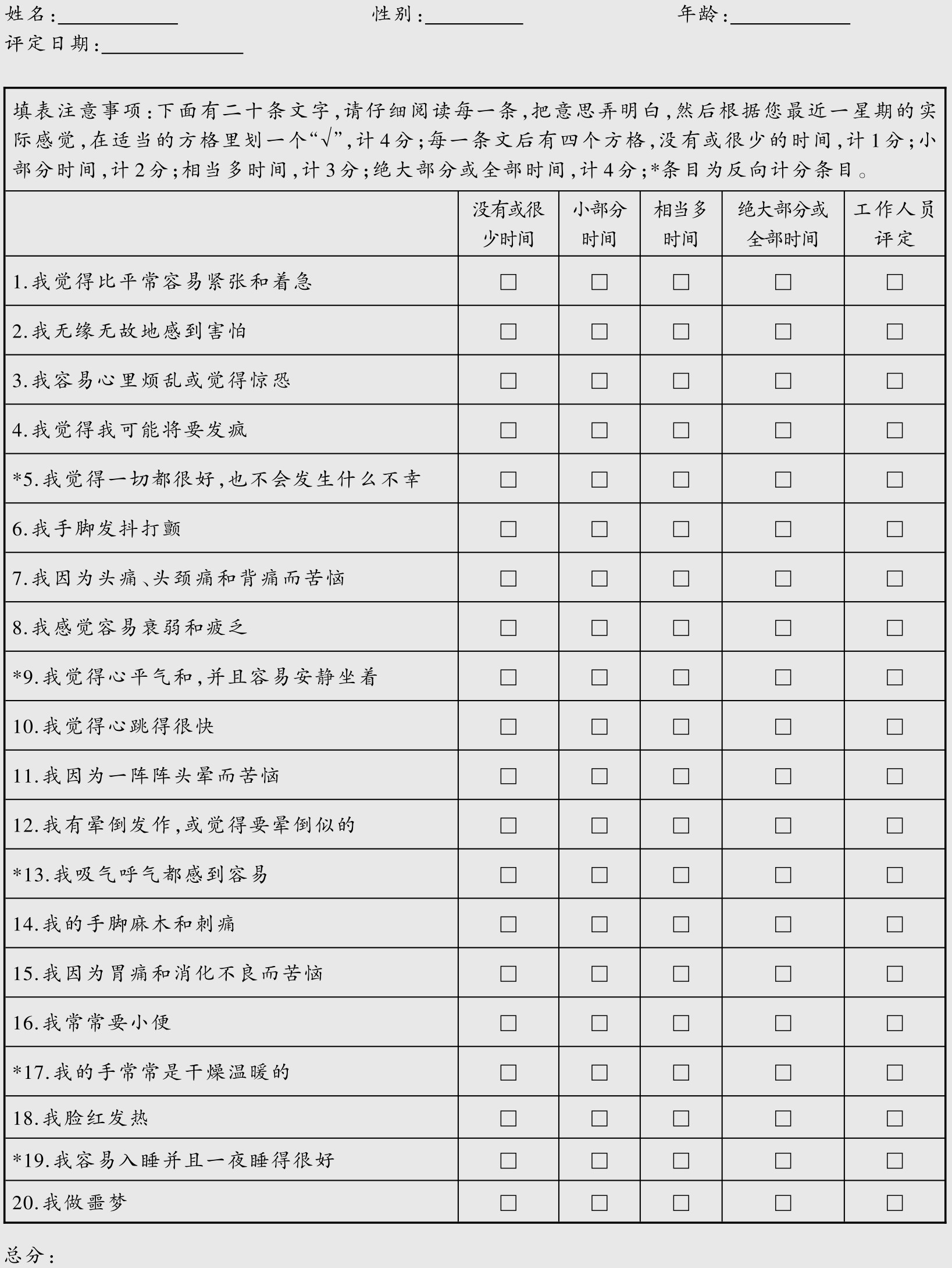 表4 焦虑自评量表(SAS)