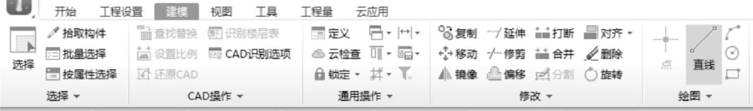 “直线”绘制主要用于线状构件(如梁和墙),当需要绘制一条或多条连续直线时,可以采用绘制“直线”的方式,其操作方法如下: