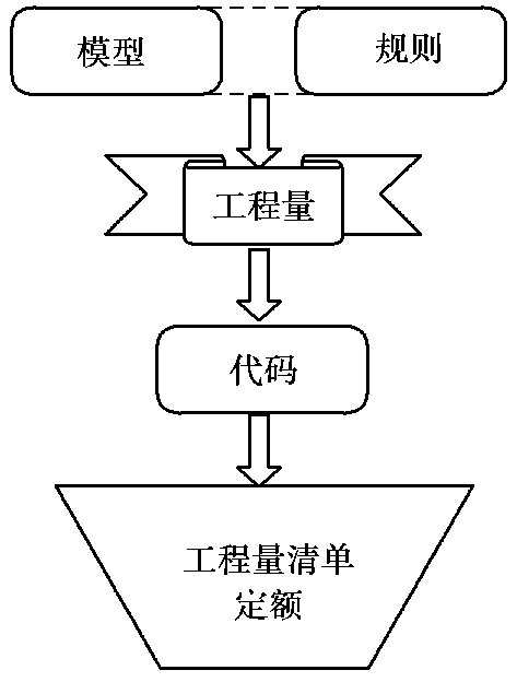 目前,建筑设计输出的图纸绝大多数是采用二维设计,提供建筑的平、立、剖面图纸,对建筑物进行表达。而建模算量则是将建筑平、立、剖面图结合,建立建筑的三维空间模型。模型的正确建立可以准确地表达各类构件之间的空间位置关系,土建算量软件则按内置计算规则计算各类构件的工程量,构件之间的扣减关系则根据模型由程序进行处理,从而准确计算出各类构件的工程量。为方便工程量的调用,将工程量以代码的方式提供,套用清单及定额时可以直接套用,如图1.2所示。