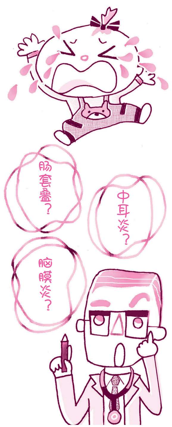 未满周岁的孩子最容易得的一种病叫肠套叠。肠套叠是指一段肠管套入其他肠腔的疾病。得这种病的孩子会每隔十分钟左右便间歇性地哭泣,而且哭声剧烈。如治疗不及时,套入肠腔的肠管可能会坏死。因此,一旦孩子出现上述症状,即使是在深夜,也应该马上带孩子去医院检查。