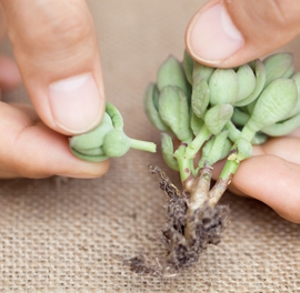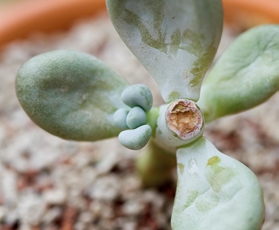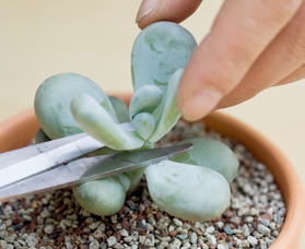 3.切口收敛后,将剪下部分埋进另一盆土中养护。