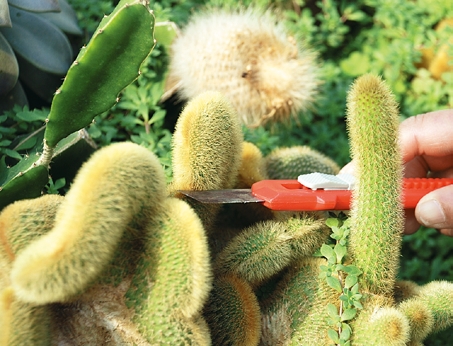 仙人掌类花卉切取冠状茎块进行嫁接。